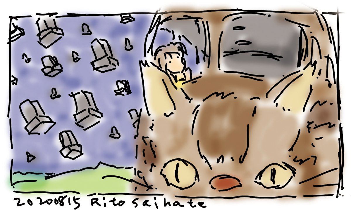 さいはてりと イラストレーター トトロの墓道の都市伝説から 墓道を通るサツキの絵 お絵かき用ipad買ったので初sketchesお絵かき Photoshopで色付け ネコバス トトロ トトロのお絵描き となりのトトロ 隣のトトロ メイ サツキ サツキとメイ